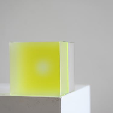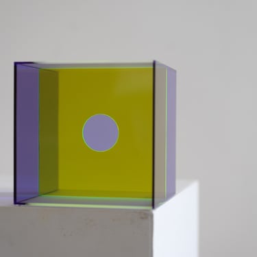 “Events in my life inspire me now and intuitively prompt me to refine my search for light in form, matter and colors. Only with the transparency of the plexiglass, without using electricity, do I try to bring out the light through the colors I choose spontaneously. With this material I can express my way of simplifying and minimizing shapes. With the square shape, as a symbol of stability and with the circular shape as the symbol of infinity and harmony.”